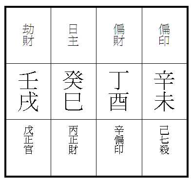 令堂謂台造(辛未,丁酉,癸巳,壬戌)為三奇格。